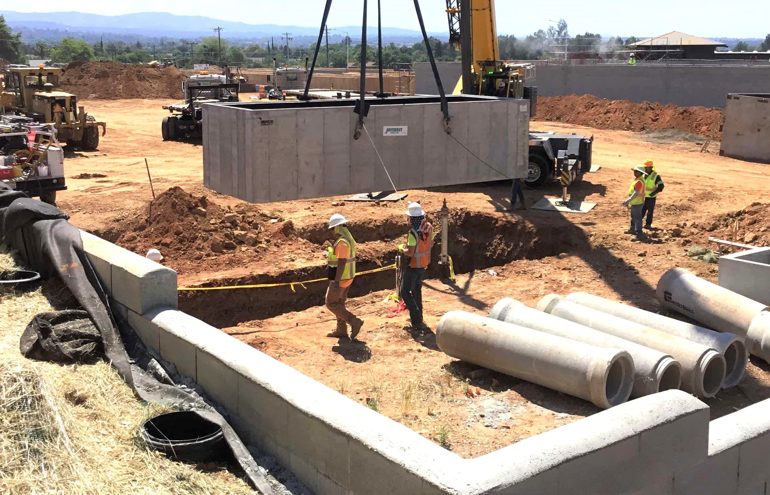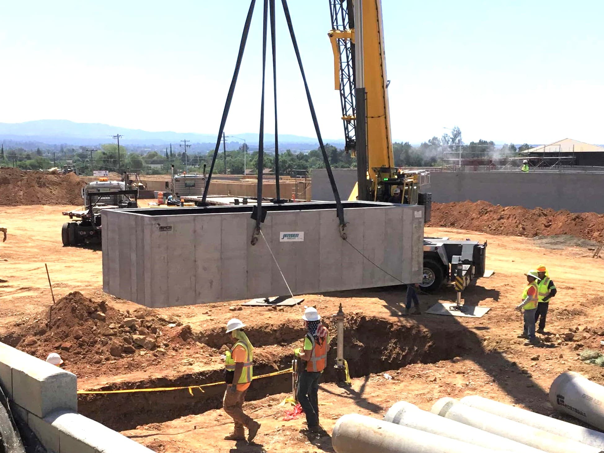 “Our job for Station 63 includes one base, two risers, and one cover slab,” says Marshall Hammon, Inside Sales Representative for the Jensen Orland Branch. “We worked with Bobo Construction out of Elk Grove, California, and expect to finish in early July. It’s an important project for the Oroville community. Our precast concrete vault will help ensure the fire engines are ready to go when needed. You can’t afford to have them fail when a fire breaks out.”