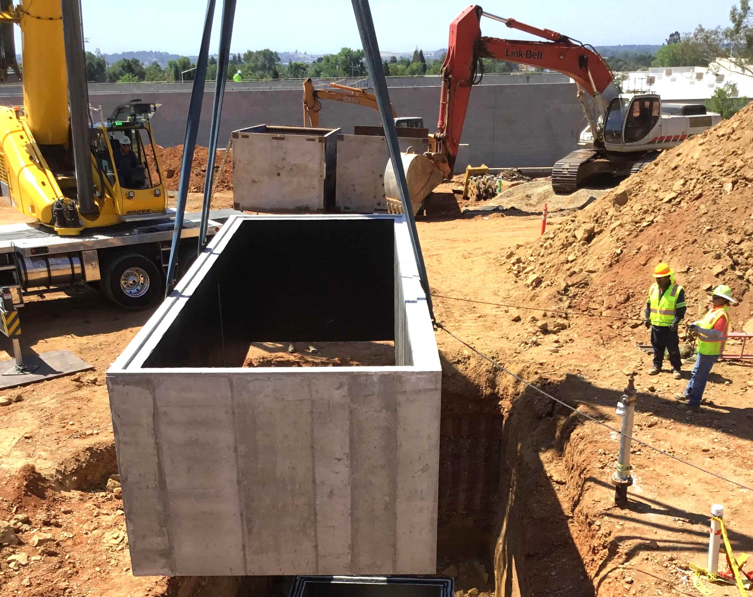 Currently undergoing a complete renovation, Station 63 is installing a new pump test vault manufactured by Jensen in Orland, California. Set at 16’ deep, the 23’ L x 8½’ W x 16’ H custom vault weighs in at 57½ tons.