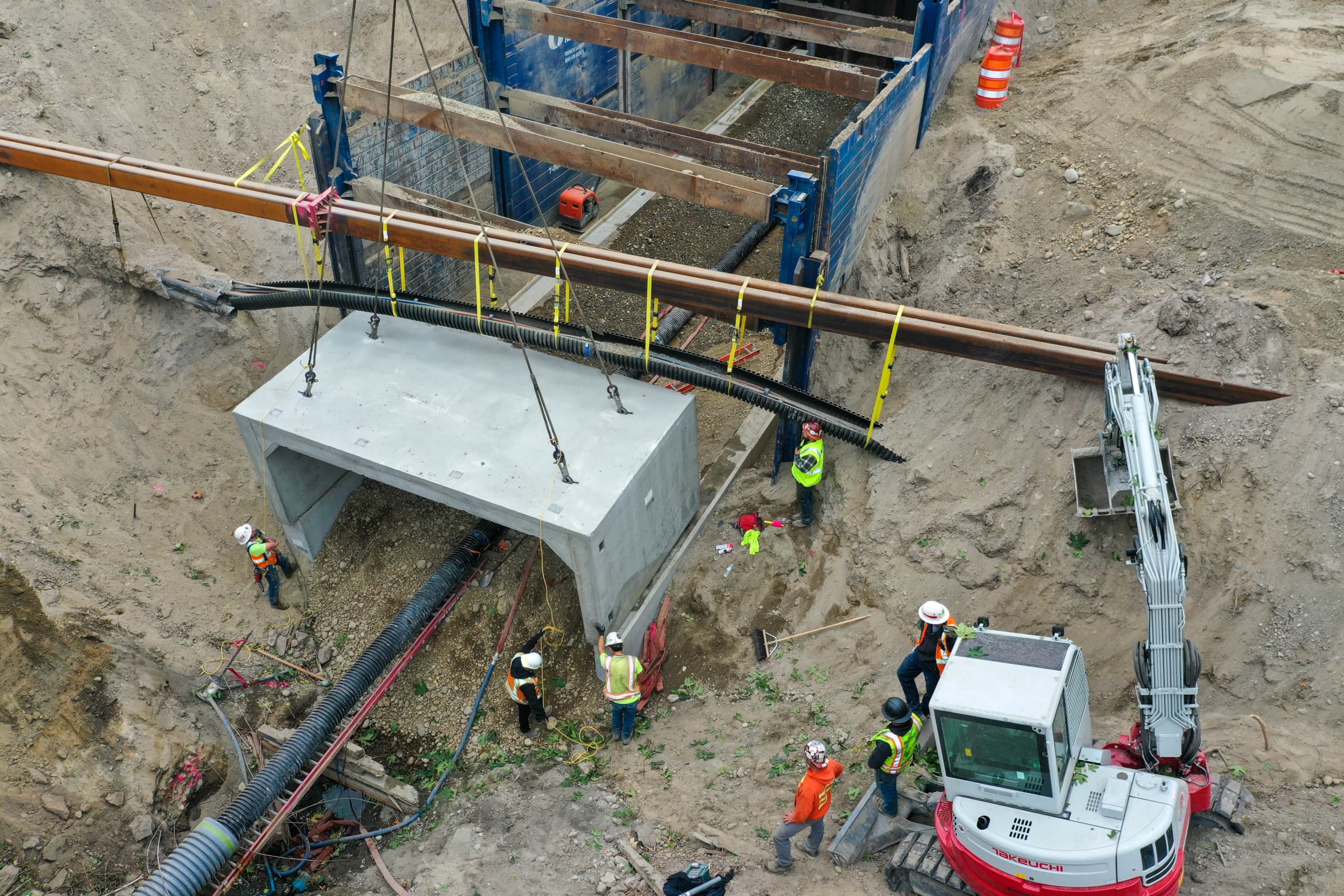 The precast concrete components provided by Jensen were the least of his worries, Detray says. “The culvert sections are going together great. It’s been very smooth, very professional.” Once his crew completed the workarounds for utilities and fiber, the rest of the project was straightforward, with final culverts set October 8.