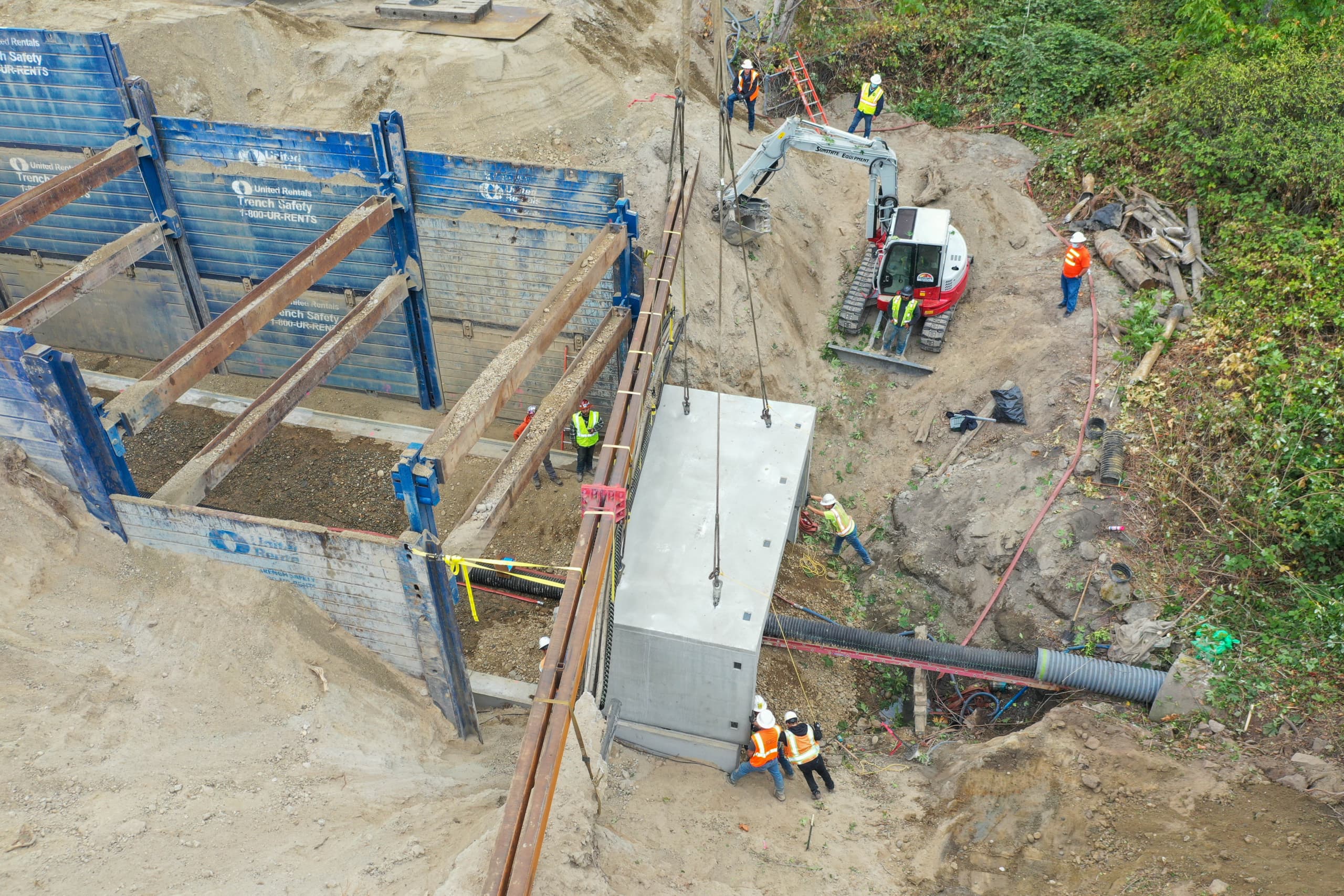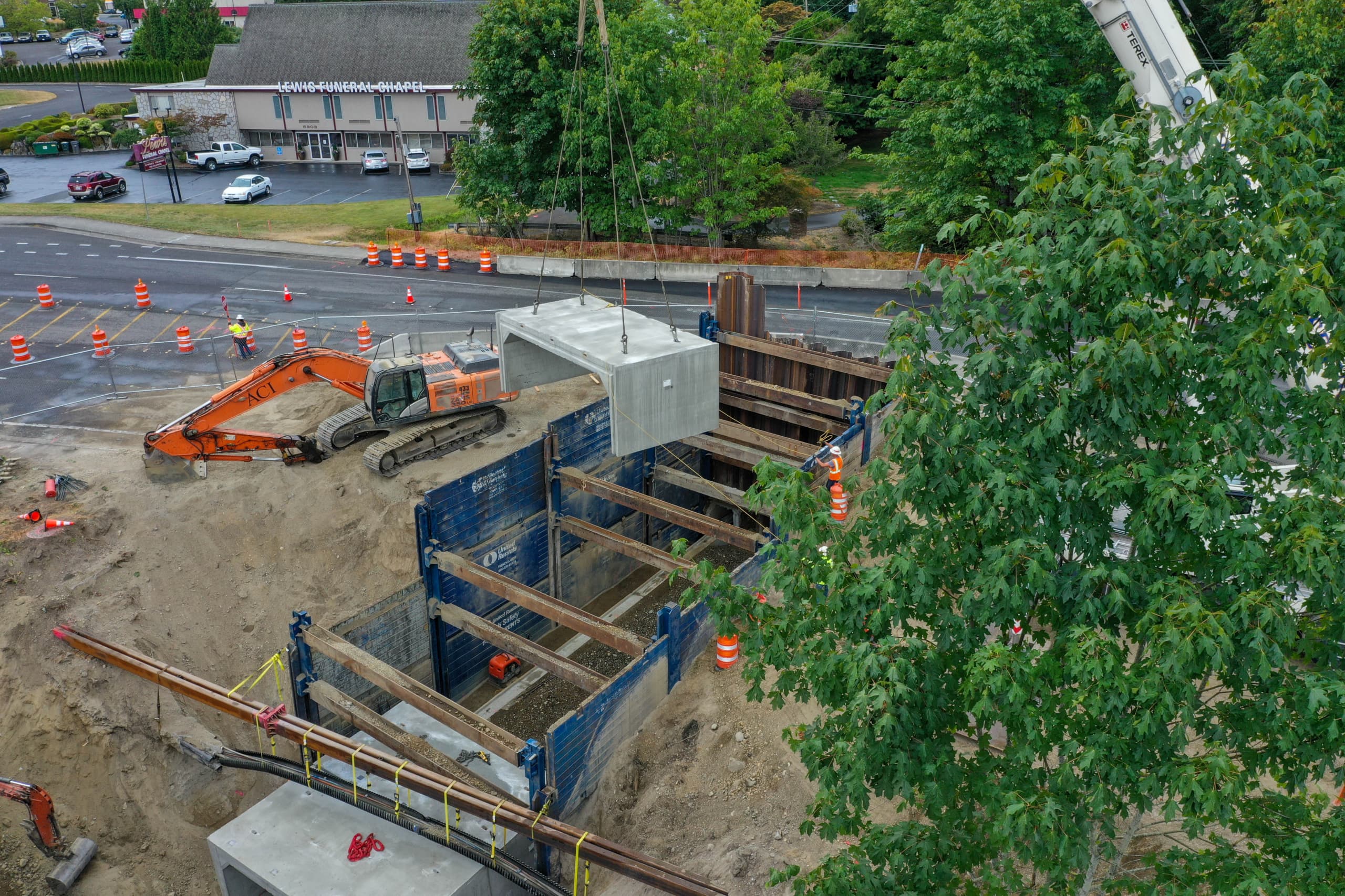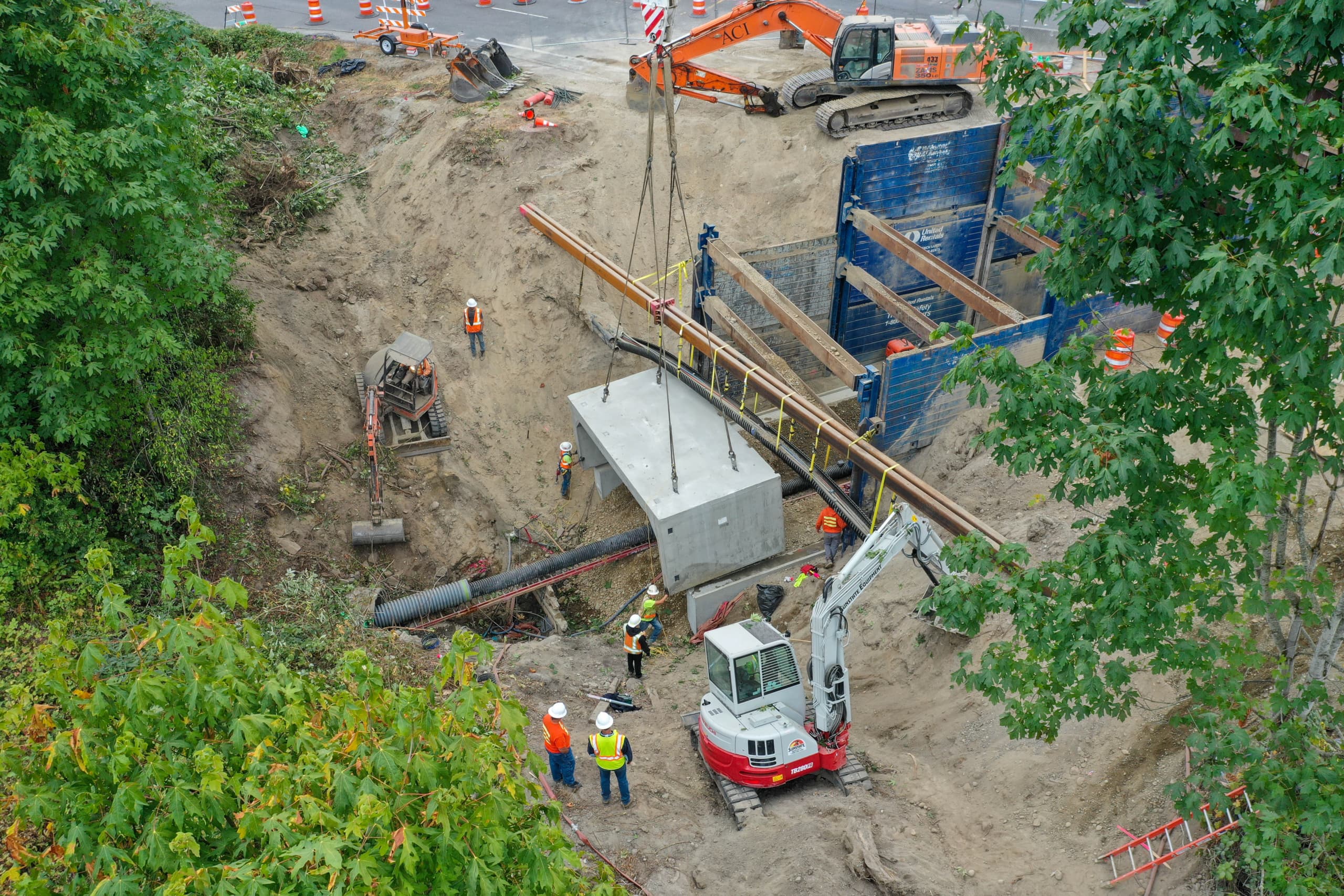 Each rehab project brings its own unique challenges, depending on the terrain and the infrastructure around the culvert. Active Construction Inc. (ACI) planned the Kitsap Way installation in two phases so it could close half of the roadway, install half of the culvert, pave, reopen the road, then close the second half and repeat the process.