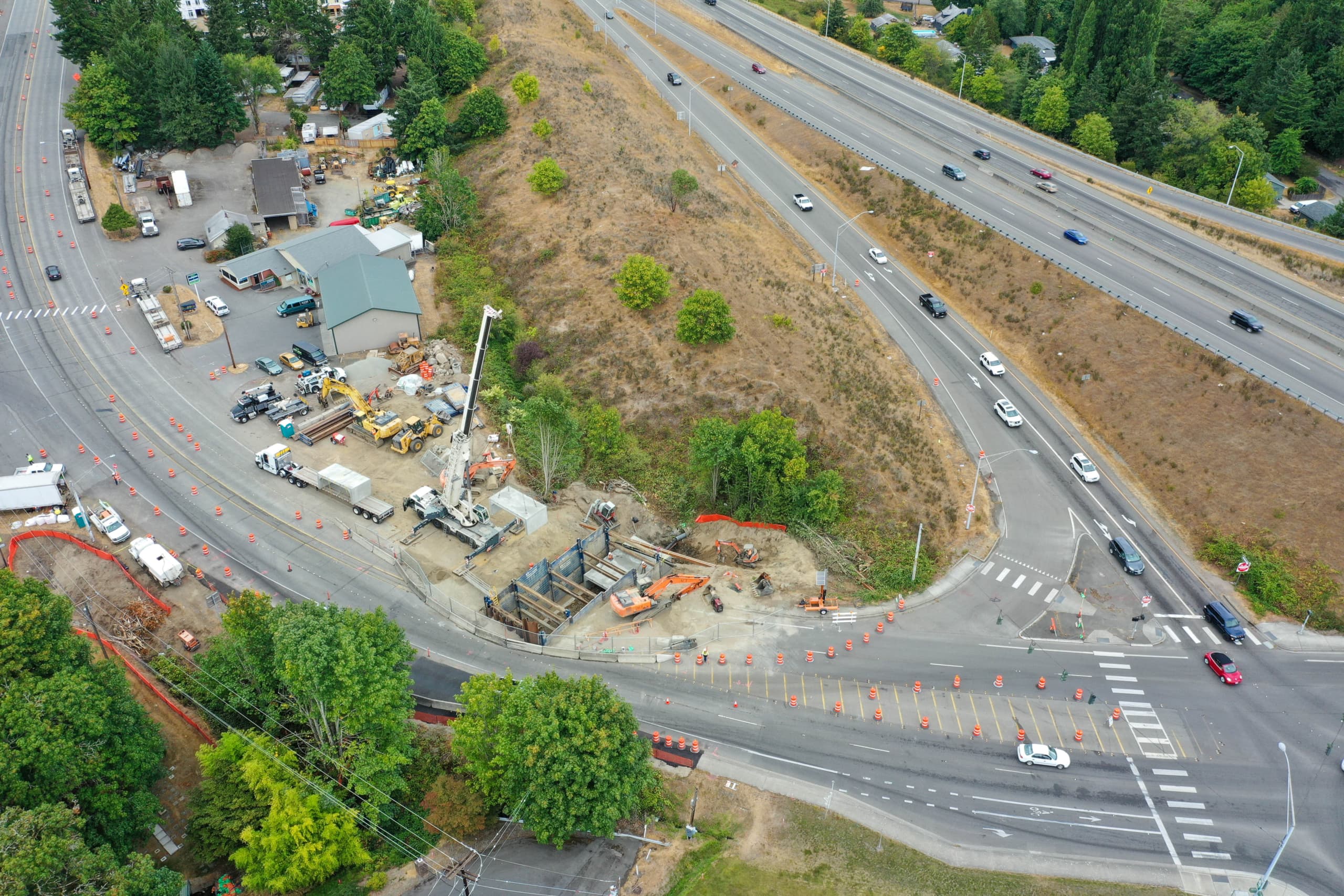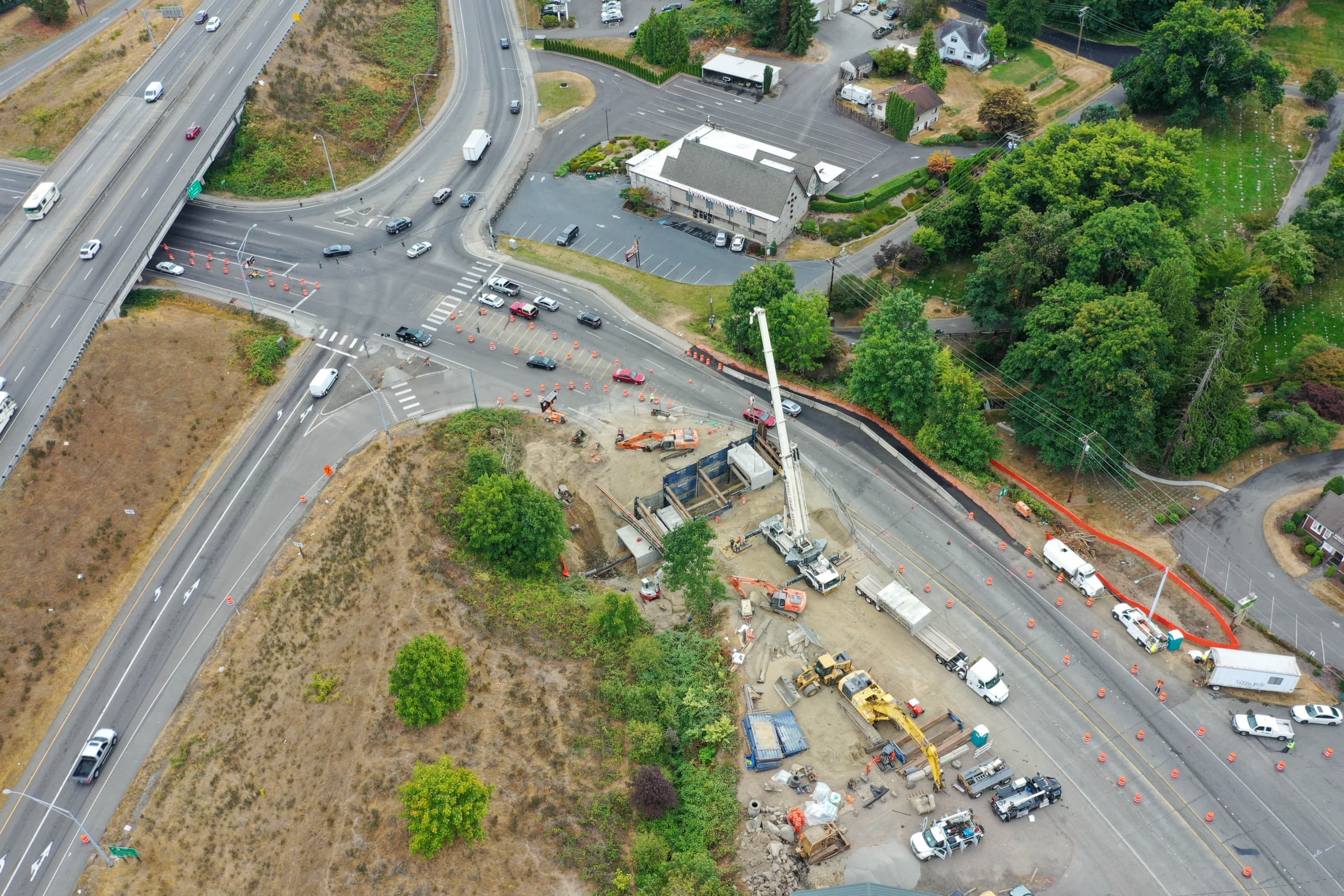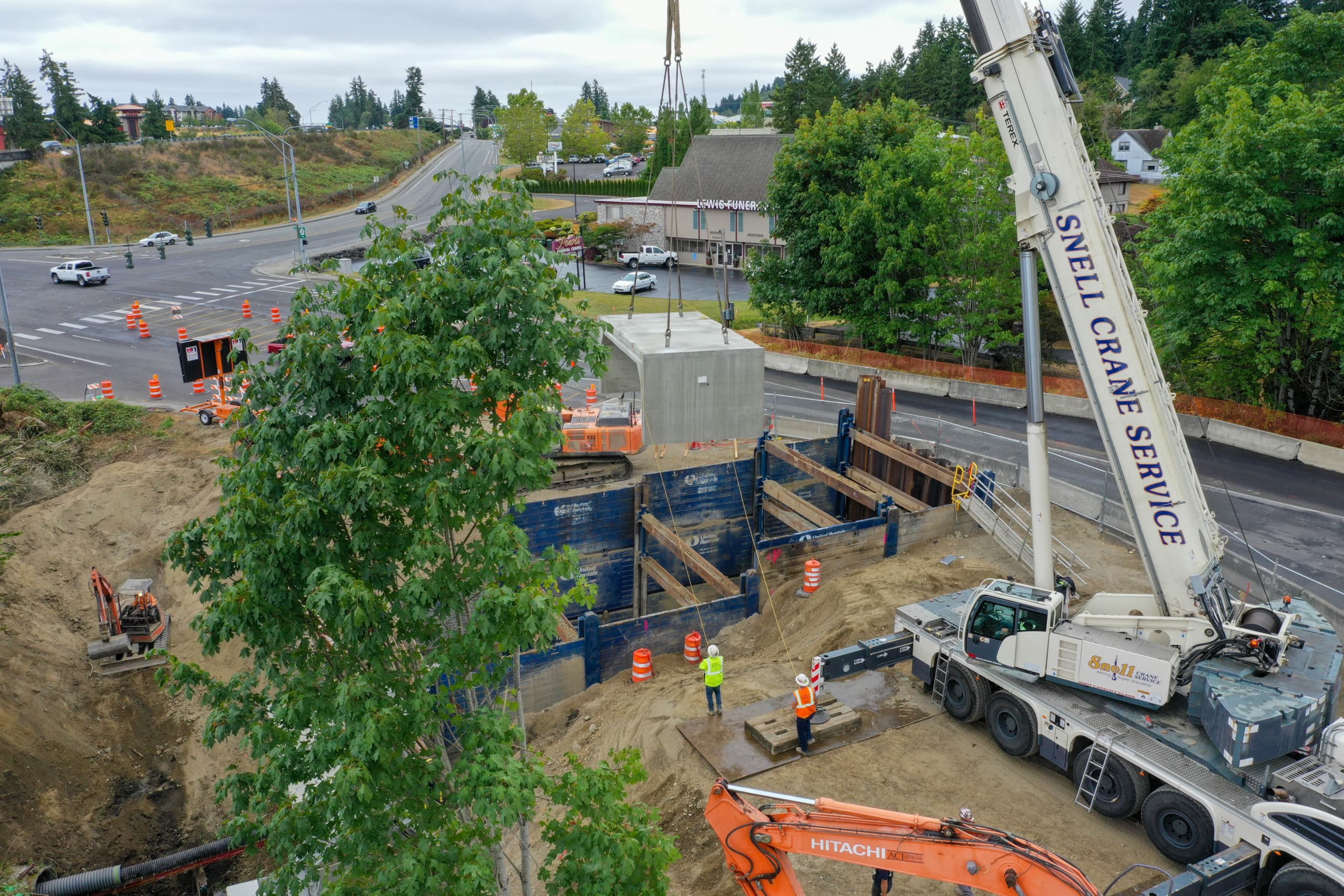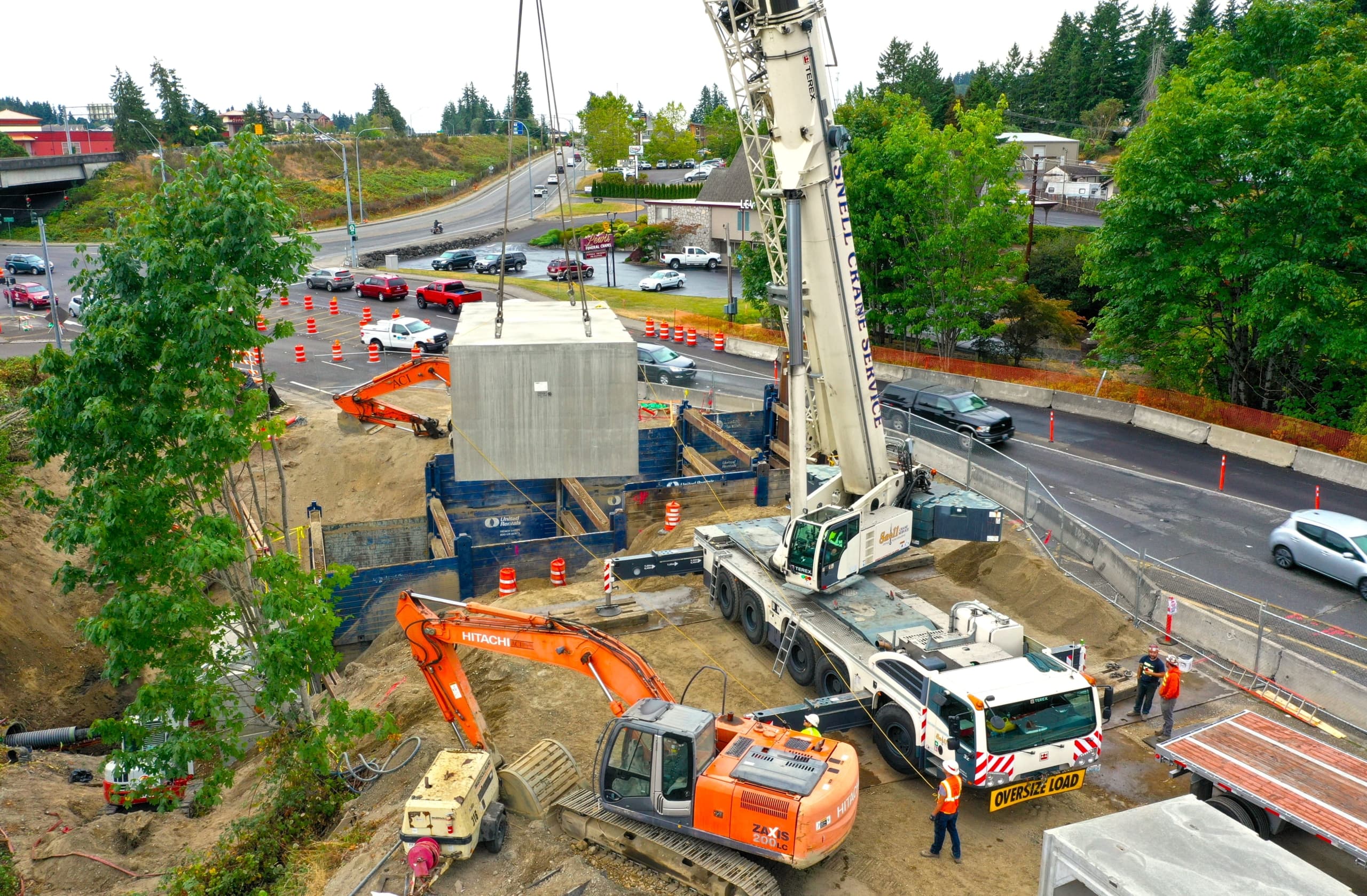 Originally specified as an 11’H x 17’W span to replace a 4’ square cast-in-place culvert, Jensen proposed a 5’ stem wall on footings that support the three sided culvert pieces forming the bridge under Kitsap Way. The project includes 16 stem wall bases, 15 box culvert pieces, five wingwall sections, and a headwall to retain the soil cover, which ranges from 6’ to 14’ high.