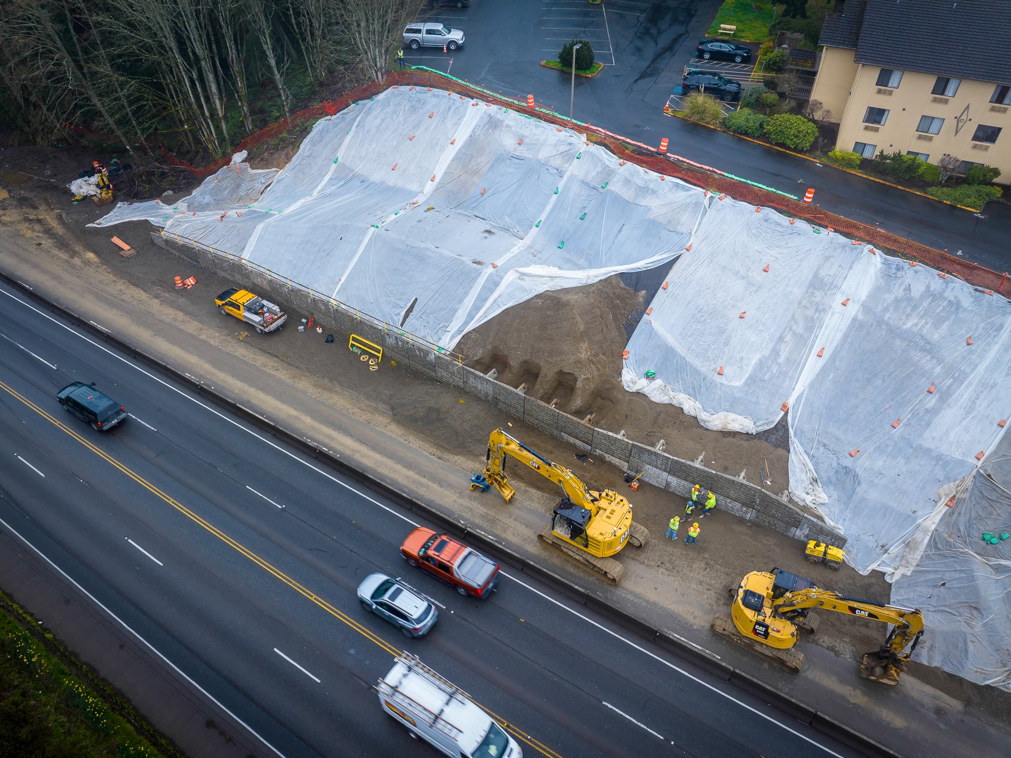 A traditional MSE wall would have required extensive excavation, driving up labor, time, and complexity. Plus, in a tight corridor under live traffic, that approach becomes inefficient and difficult to stage.