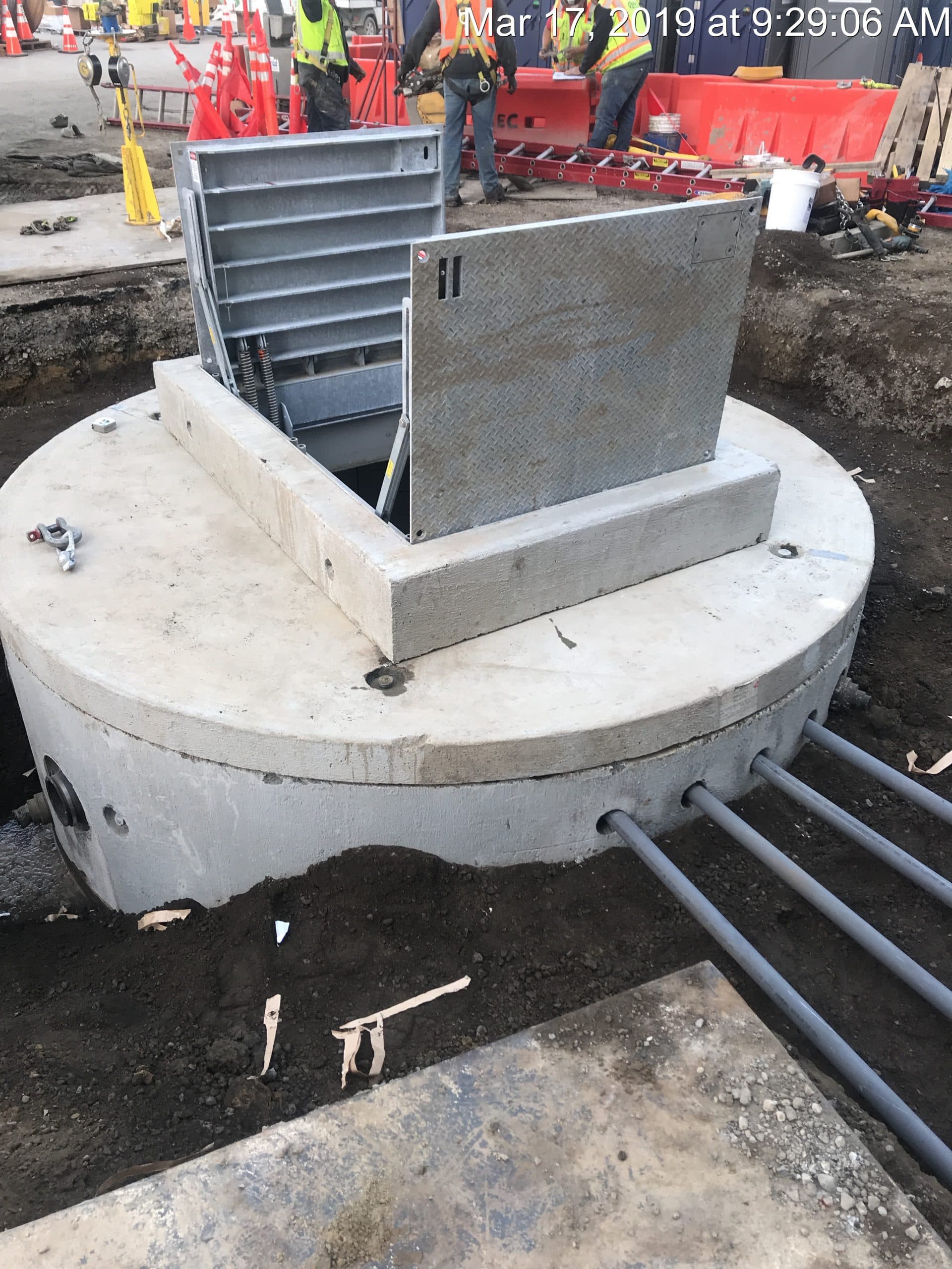 “We furnished a complete package, including an A-LOK lined concrete well for H2S corrosion protection, FM-rated HOMA ASC submersible pumps with 4” spherical solids clearance, and additional cutting system to address long fibrous material,” says Nick Pace, Jensen Pump Technician. “We also included a Wager passive carbon media odor control valve to disguise the system from travelers and a separate precast concrete valve vault with a Jensen access hatch for ease of maintenance.”