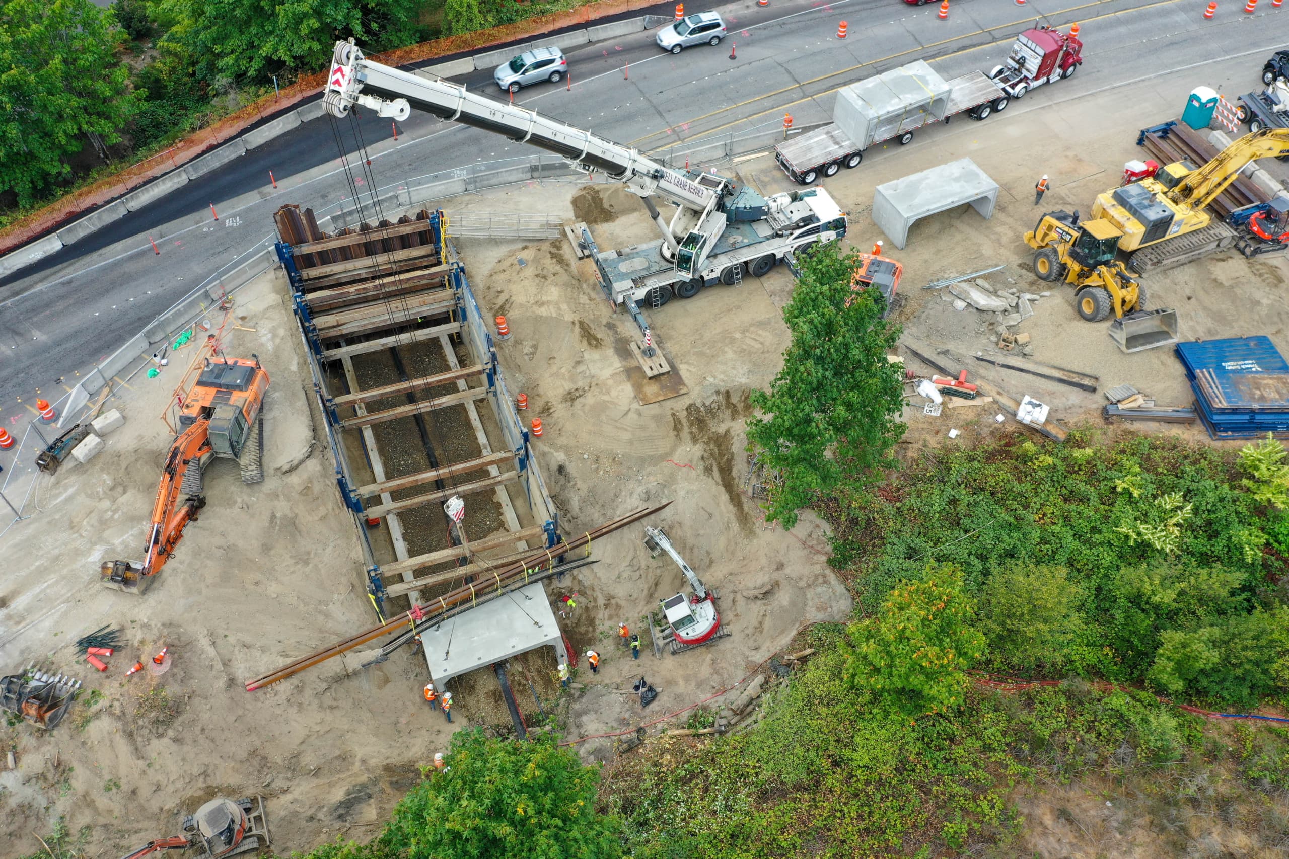 Each rehab project brings its own unique challenges, depending on the terrain and the infrastructure around the culvert. Active Construction Inc. (ACI) planned the Kitsap Way installation in two phases so it could close half of the roadway, install half of the culvert, pave, reopen the road, then close the second half and repeat the process.